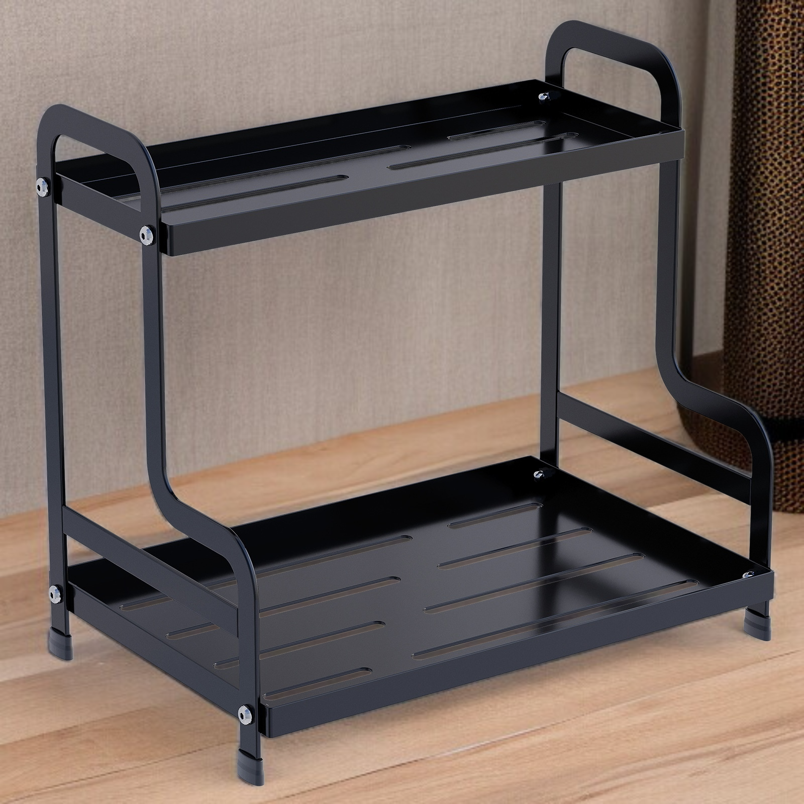 二重層設計で化粧品や香水を整理。バスルームやカウンターに適した省スペース収納ラック。耐水性、耐久性に優れる。